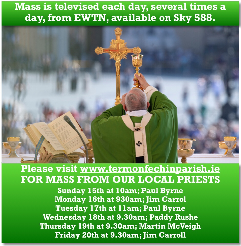 Fr. Paddy shares the concerns, anxieties and frustrations of many at this difficult time, and apologises for the disruption in normal scheduling of Mass, and other Church/Parish activities.