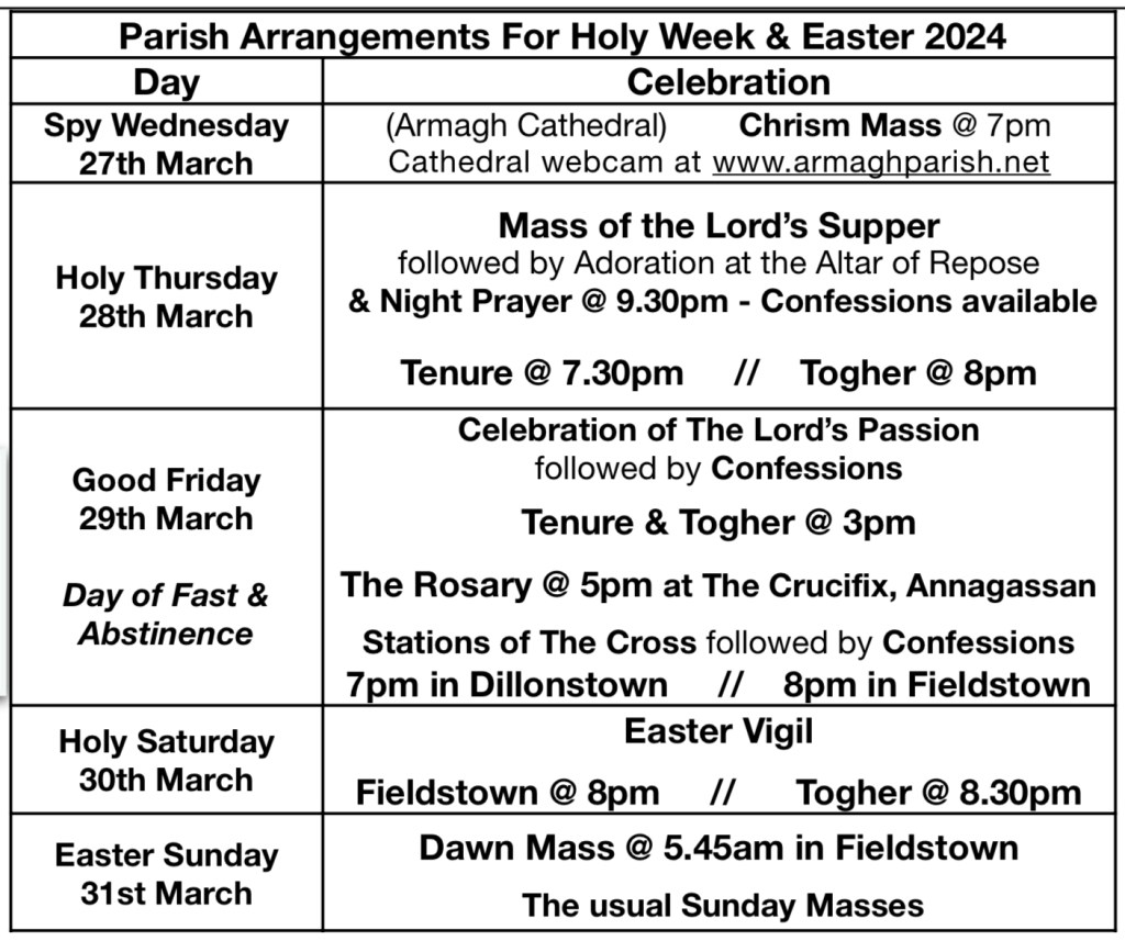 TOGHER on HOLY Thursday 28th after 8pm Mass.
